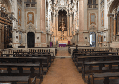 No interior, destaca-se a imponente imagem de Nossa Senhora da Encarnação, no retábulo-mor, esculpida por Machado de Castro; bem como as pinturas dos tectos, seja o da capela-mor, com uma representação do Mistério da Encarnação de notável dramaticidade, seja o da nave, que figura a Anunciação a Nossa Senhora.